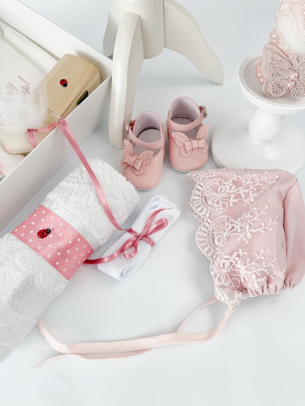 Toate elementele sunt asezate cu grija intr-o cutie eleganta cu capac transparent, creata special pentru a pastra vie amintirea acestui moment unic si pentru a facilita transportul.