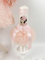 LUMANARE- frumos confecționată din tull moale in ton cu culoarea rochiței pentru botez.