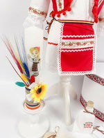 - Brau tricolor – talia este subliniata de un brau in culorile tricolorului, simbol al unitatii si identitatii nationale.