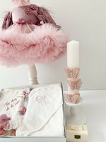 - Cutiuta pentru prima suvita si sticluta transparenta pentru mir, completeaza cu eleganta acest set adorabil.