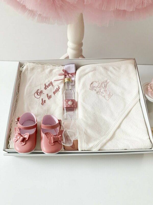 Trusoul este alcatuit cu grija si iubire, oferindu-i micutei toate elementele necesare in aceasta zi deosebita.