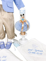 - Panza de mir si sapunul pentru bebelus completeaza setul, adaugand simboluri ale puritatii si binecuvantarii in acest moment special.