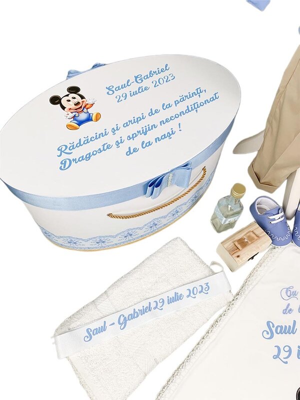 Cu aceasta cutie mare pentru depozitarea trusoului, vei putea pastra toate aceste piese de valoare intr-un loc sigur si special, reamintindu-ti mereu de momentul unic al botezului.