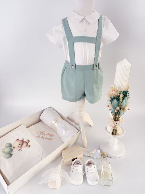 ✔ Tricou alb cu guler – Confectionat dintr-un material moale si delicat, acest tricou elegant ofera confort pielii sensibile a bebelusului.