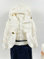 - Sacou ivoire, confectionat din bumbac de cea mai inalta calitate, este atat elegant, cat si confortabil. Cu o captuseala fina pentru un confort sporit, micutul dumneavoastra se va simti minunat in acest sacou.