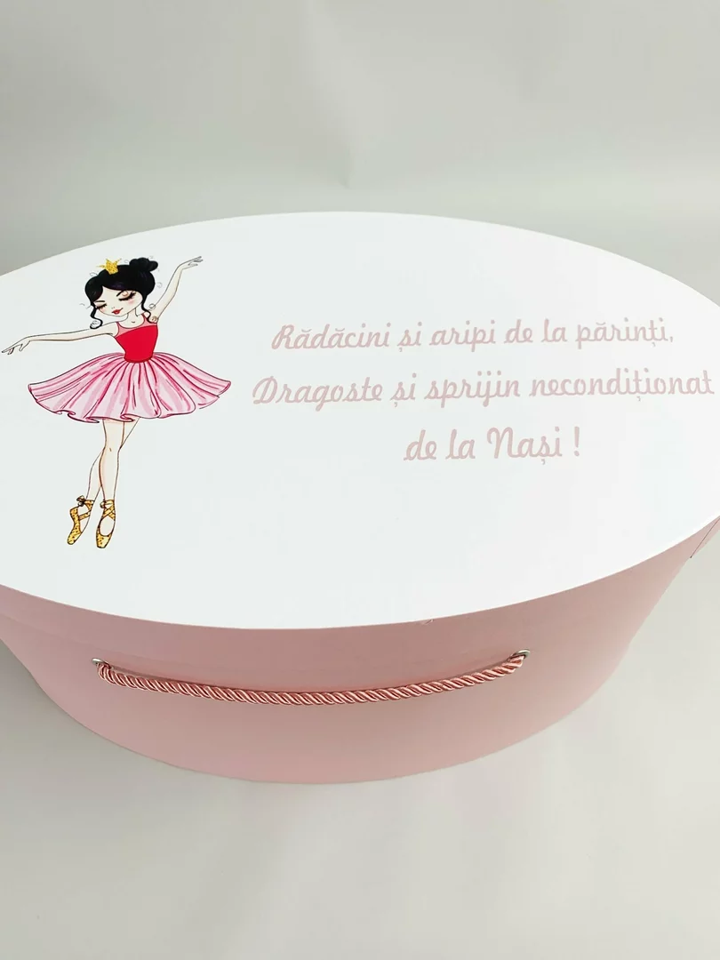 ✔ Cufar personalizat cu balerina – Decorat cu o delicata balerina imprimata si un mesaj emotionant, perfect pentru a insoti cele mai frumoase amintiri.
