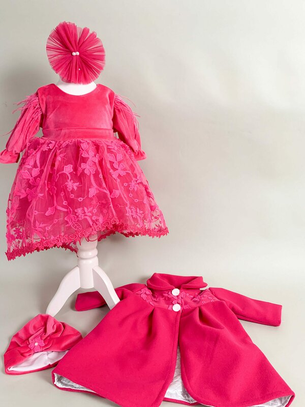 Aceasta rochie a fost proiectata cu grija pentru confortul bebelusului. Este captusita cu bumbac pentru a-i asigura caldura si confortul pe toata durata evenimentului. Inchiderea cu fermoar face imbracarea rapida si facila.