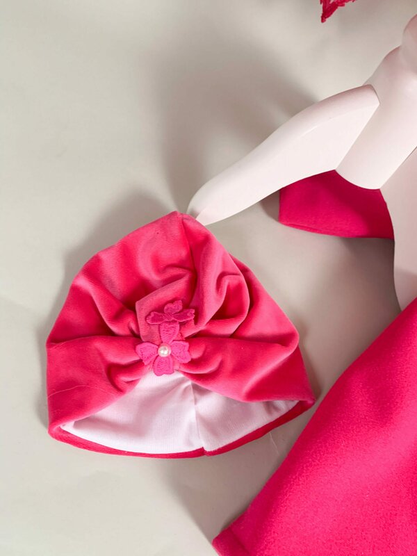- Turban elegant din catifea moale si o bentita asortata cromatic, astfel incat micuta dumneavoastra sa arate si sa se simta ca o mica printesa.