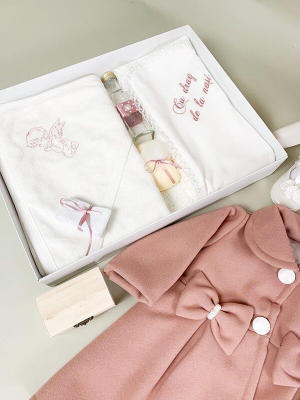 - Prosopul bebelusului cu un ingeras brodat si capison.