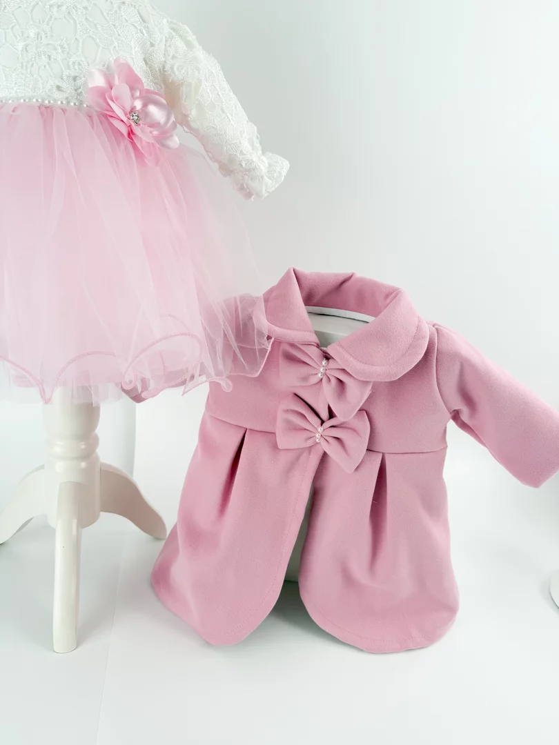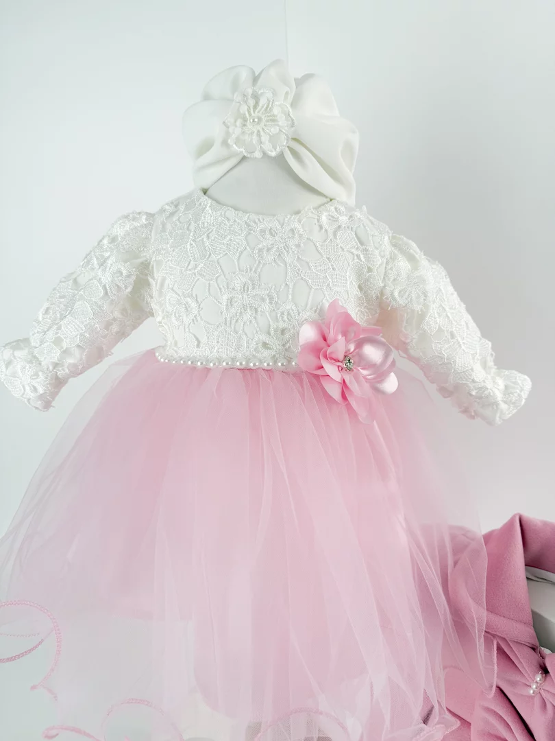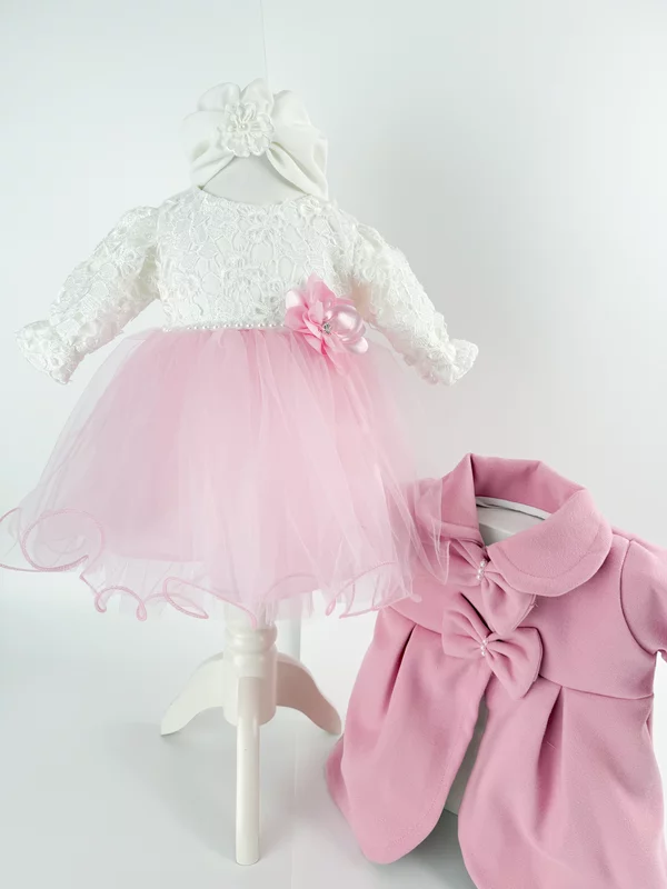 Aceasta rochita eleganta de botez sau pentru ocazii speciale este conceputa pentru parintii care cauta un set complet, practic si elegant.