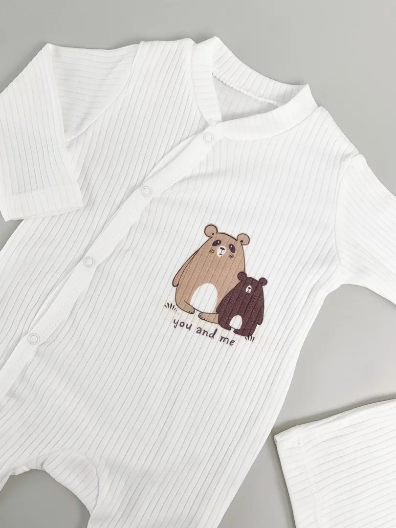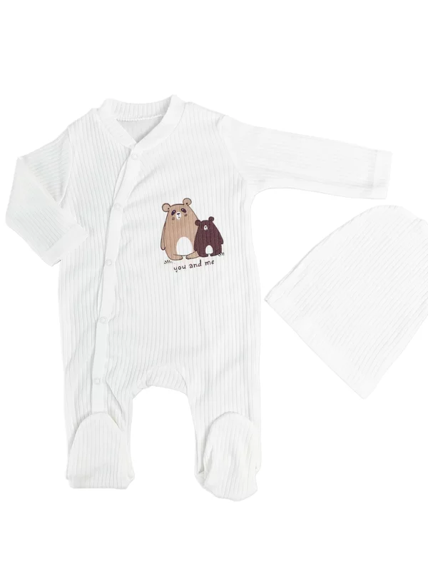 Salopeta baiat alba cu ursuleti - 2 piese