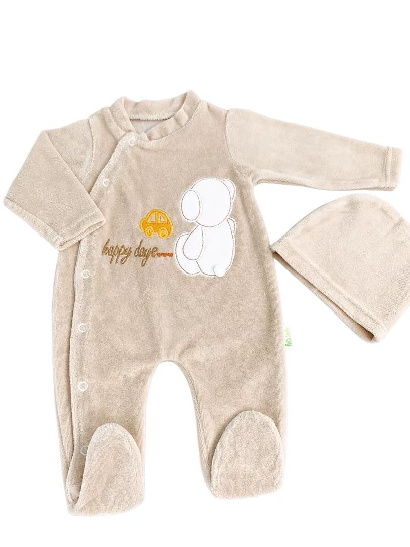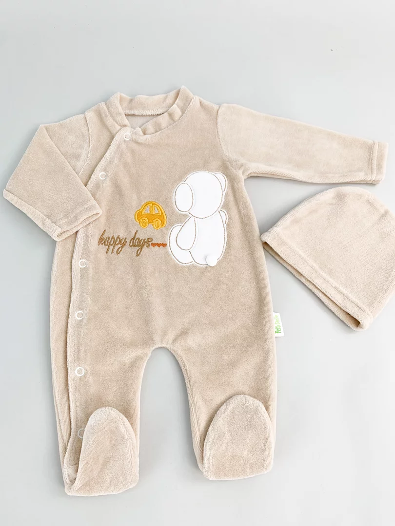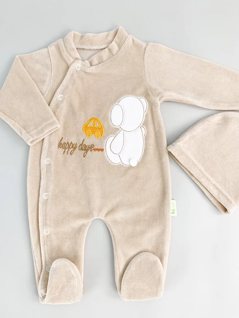 Salopeta maro pufoasa baiat cu ursulet