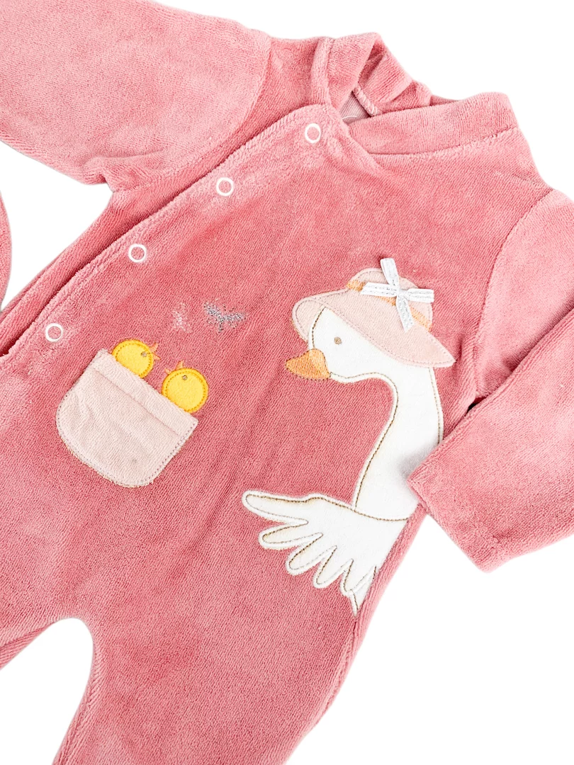 Realizata din material fleece pufos, moale si antialergic, salopeta ofera o experienta placuta la purtare.