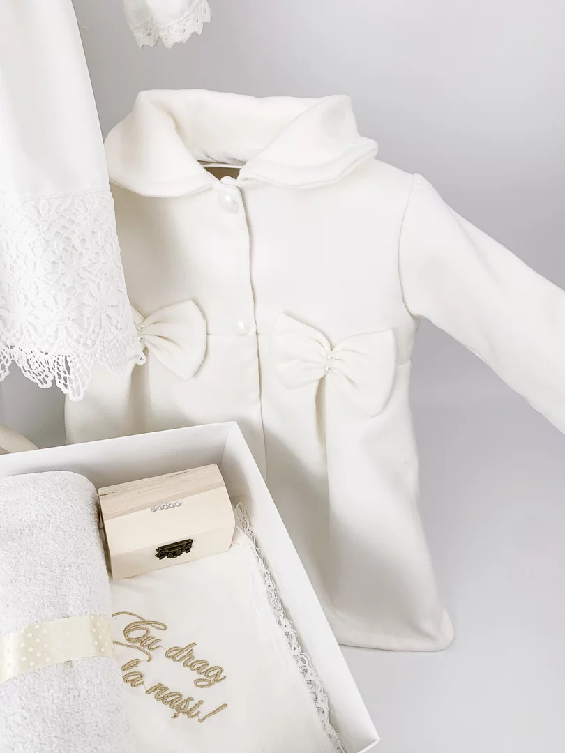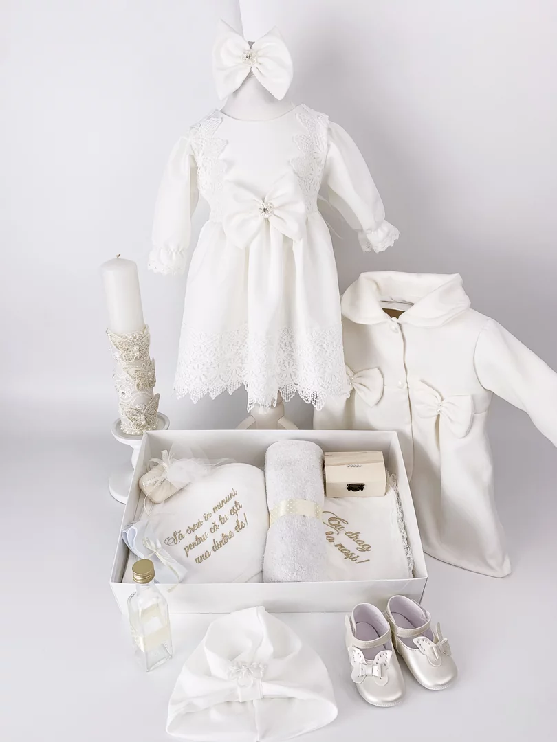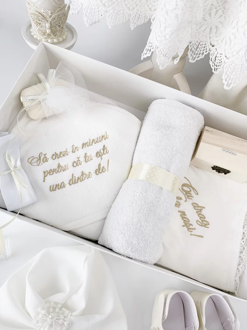 Acest trusou de botez pentru fetite este conceput pentru a oferi toate elementele necesare ceremoniei intr-un singur pachet complet.