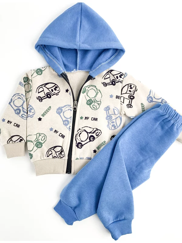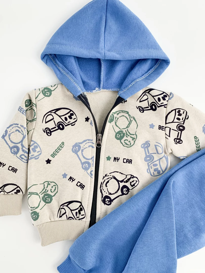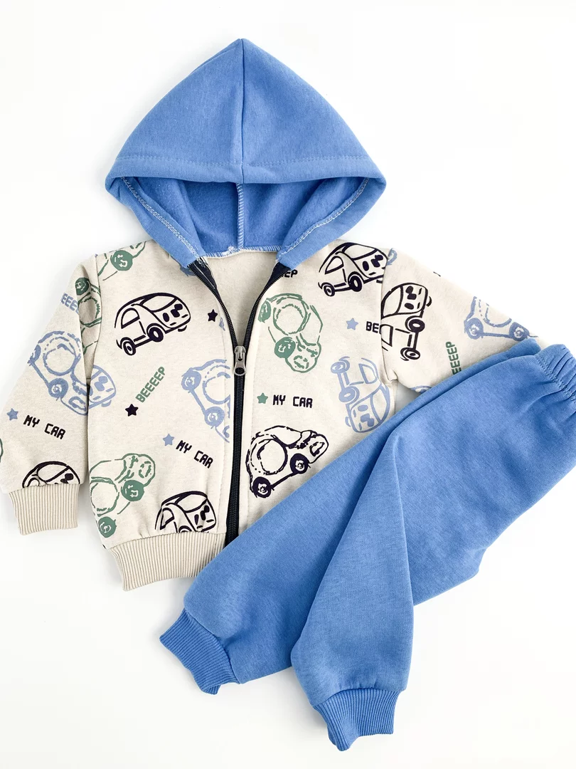 Trening gros copii 2 piese - albastru cu masinute