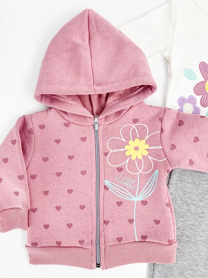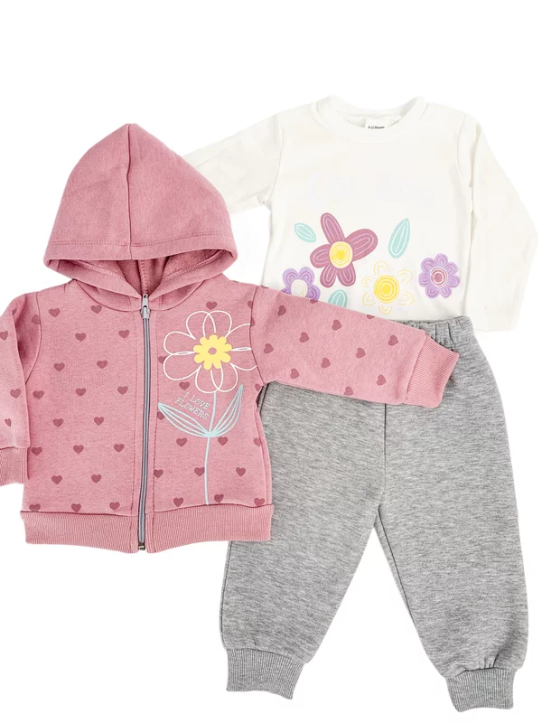 Acest compleu pentru bebelusi format din 3 piese este ideal pentru plimbari, activitati zilnice sau tinute casual confortabile!
